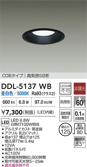 DAIKO 大光電機 LEDダウンライト DDL-5137WB