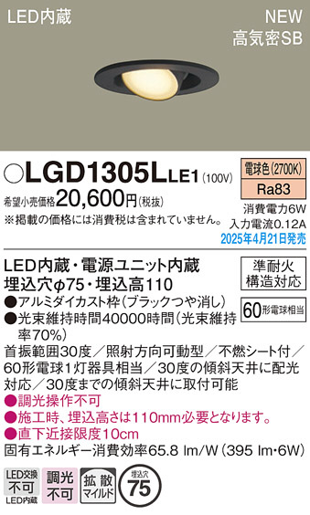 Panasonic ダウンライト LGD1305LLE1