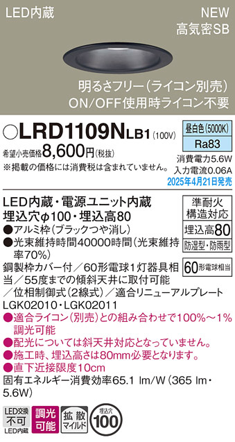 Panasonic エクステリアダウンライト LRD1109NLB1