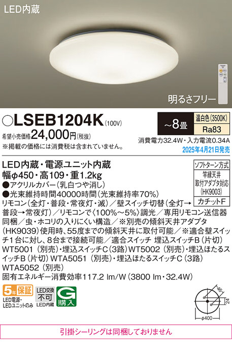 Panasonic シーリングライト LSEB1204K