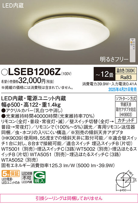 Panasonic シーリングライト LSEB1206Z