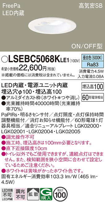 Panasonic ダウンライト LSEBC5068KLE1