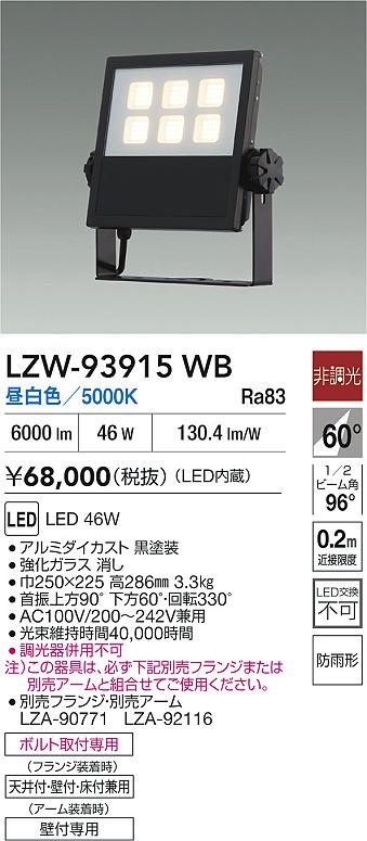 DAIKO 大光電機 LED アウトドアスポット LZW-93915WB