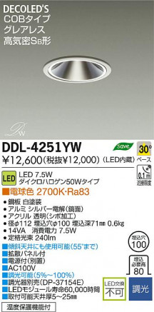 断熱施工S形・ドレスダウンライト・白熱灯60Wタイプ(□100)