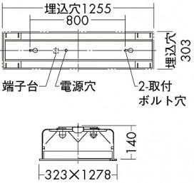 寸法:巾323 長1278 埋込穴303×1255 埋込深140mm