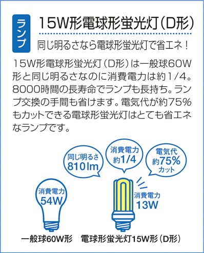 15W形(E26)×1灯 電球色 電球形蛍光灯(D形)