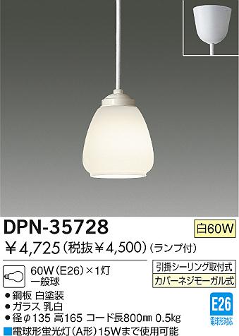 寸法:径φ135 高165 コード長800mm 機能/他:■電球形蛍光灯(A形)15Wまで使用可能 素材/色/仕上:鋼板 白塗装|ガラス 乳白 重量0.5kg ワット数白60W