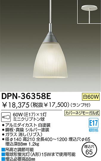 寸法:径φ140 高210 全長400〜1200 埋込穴φ65 埋込深88mm 機能/他:■吊高さ調節可能|■電球形蛍光灯(A形)15Wまで使用可能|■埋込必要高88mm 素材/色/仕上:アルミダイカスト 白塗装|鋼板・真鍮 シルバー塗装|ガラス 消し(リブ入) 重量1.2kg ワット数白60W