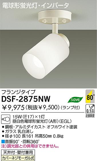 寸法:径φ100 高200mm 機能/他:■首振90°・回転360°|注)調光器との併用はできません。|フランジタイプ|電球形蛍光灯・インバータ|SAVE 素材/色/仕上:鋼板・アルミダイカスト オフホワイト塗装|ガラス 乳白消し 重量0.8kg ワット数蛍15W