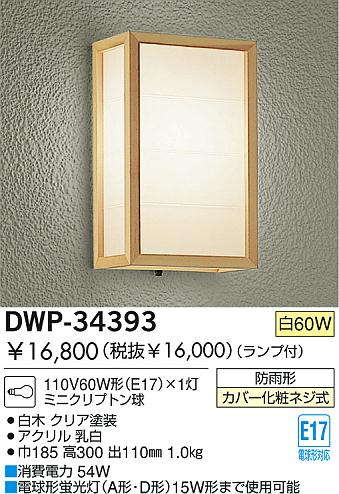 寸法:巾185 高300 出110mm 機能/他:■絶縁台別売(DP-11803)|■電球形蛍光灯(A形・D形)15Wまで使用可能 素材/色/仕上:白木 クリア塗装|アクリル 乳白 重量1.0kg ワット数白60W