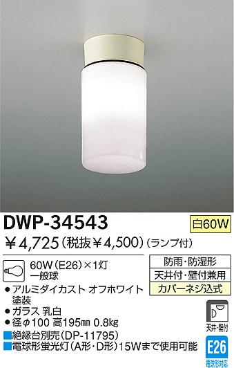 寸法:径φ100 高195mm 機能/他:■絶縁台別売(DP-11795)|■電球形蛍光灯(A形・D形)15Wまで使用可能 素材/色/仕上:アルミダイカスト オフホワイト塗装|ガラス 乳白 重量0.8kg ワット数白60W