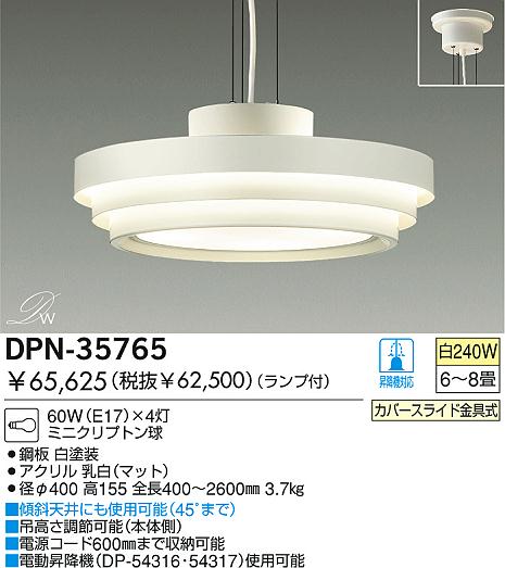 寸法:径φ400 高155 全長400〜2600mm 機能/他:■傾斜天井にも使用可能(45°まで)|■吊高さ調節可能(本体側)|■電源コード600mmまで収納可能|■電動昇降機(DP-54316・54317)使用可能|DWHITES 素材/色/仕上:鋼板 白塗装|アクリル 乳白(マット) 重量3.7kg ワット数白240W