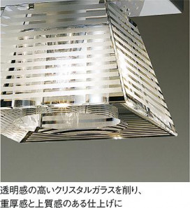 寸法:巾100 長540 高115 全長250〜1200mm 機能/他:■吊高さ調節可能|■電源コード500mmまで収納可能|ハンドメイド 素材/色/仕上:鋼板 クロームメッキ|クリスタルガラス(模様入) 重量3.7kg ワット数白75W