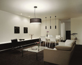 寸法:径φ580 高250 全長500〜1200mm 機能/他:■上面開放・下面一部開放|■吊高さ調節可能|■電源コード収納不可|■電球形蛍光灯(A形)15Wまで使用可能 素材/色/仕上:鋼板 黒塗装|鋼棒 白塗装|布 黒・白 重量3.7kg ワット数白240W