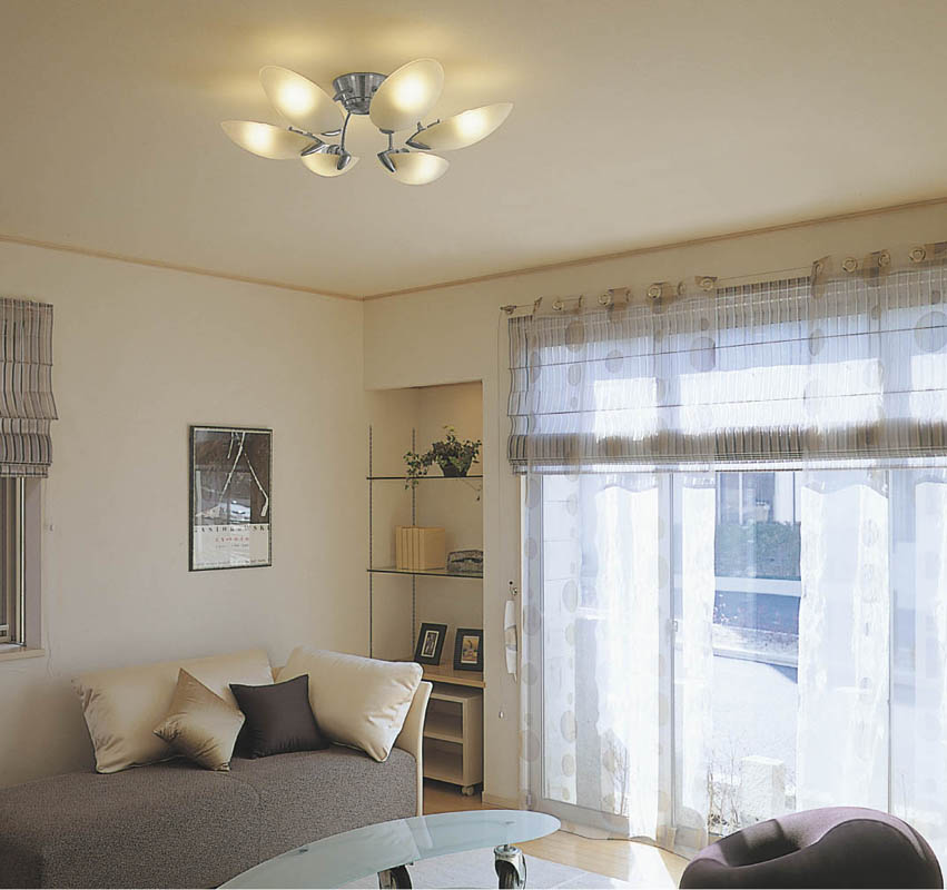 品名:蛍光灯シャンデリア 畳数:8〜10畳 光源光色:蛍光灯(電球色)蛍90W 電球形蛍光ランプA15形(E17)×6 鋼・ホワイトブロンズ色メッキ ガラス・消し 高-177 幅-φ755mm 重-6.3kg” 白熱球60W×6灯相当の明るさ