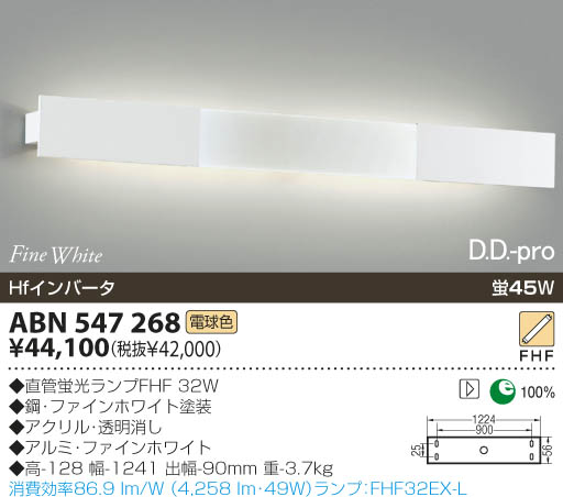 品名:蛍光灯ブラケット 畳数: 光源光色:蛍光灯(電球色)蛍45W 直管蛍光ランプFHF32W 鋼・ファインホワイト塗装 アクリル・透明消し アルミ・ファインホワイト 高-128 幅-1241 出幅-90mm 重-3.7kg 消費効率86.9lm/W