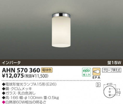 品名:蛍光灯シーリング 畳数: 光源光色:蛍光灯(電球色)蛍15W 電球形蛍光ランプA15形(E26) 鋼・クロムメッキ ガラス・乳白色消し 高-166 幅-φ100mm 重-0.5kg” 白熱球60W相当の明るさ