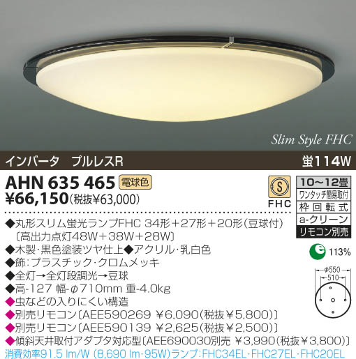 品名:蛍光灯シーリング 畳数:10〜12畳 光源光色:蛍光灯(電球色)蛍114W 丸形スリム蛍光ランプFHC34形+27形+20形(豆球付)〔高出力点灯48W+38W+28W〕 木製・黒色塗装ツヤ仕上 アクリル・乳白色 飾:プラスチック・クロムメッキ 全灯→全灯段調光→豆球 高-127 幅-φ710mm 重-4.0kg” 虫などの入りにくい構造 別売リモコンAEE590269