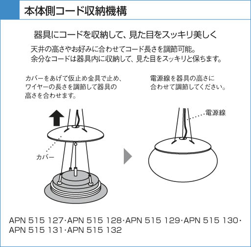 品名:蛍光灯ペンダント 畳数:6〜8畳 光源光色:蛍光灯(電球色)蛍76W 丸形スリム蛍光ランプFHC34形+20形(豆球付)〔高出力点灯48W+28W〕 鋼・オフホワイト塗装 アクリル・乳白色 シルク印刷” 全灯→全灯段調光→豆球 高-285 幅-φ555 全長-3000〜500mm 重-4.3kg” 傾斜天井に取付可能(45°まで) 昇降装置対応型 高さ調節可能型 別売リモコン〔AEE590269 ¥6