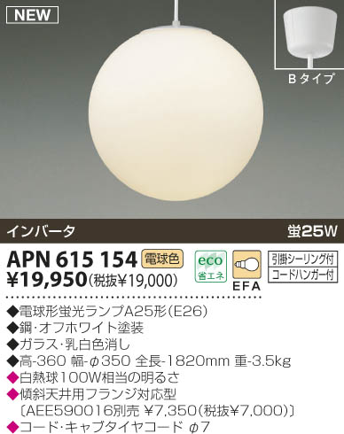 品名:蛍光灯ペンダント 畳数: 光源光色:蛍光灯(電球色)蛍25W 電球形蛍光ランプA25形(E26) 鋼・オフホワイト塗装 ガラス・乳白色消し 高-360 幅-φ350 全長-1820mm 重-3.5kg” 白熱球100W相当の明るさ 傾斜天井用フランジ対応型〔AEE590016別売 ¥7
