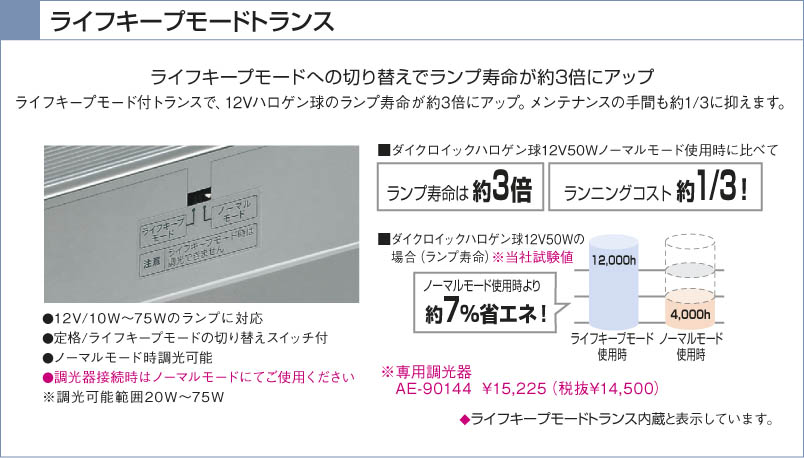 品名:スポットライト(プラグ) 畳数: 光源光色:白50W φ50ダイクロイックハロゲン球12V50W(EZ10) アルミダイカスト・ファインホワイト塗装 高-107 本体長-107 本体幅-φ65mm 重-0.5kg” ライフキープモードトランス内蔵(ノーマルモード時調光可能) 専用調光器AE-90144別売