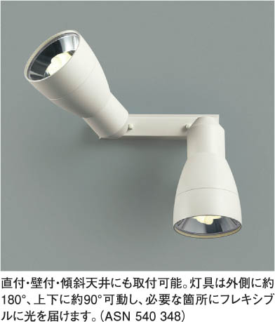 品名:スポットライト(フランジ) 畳数: 光源光色:蛍光灯(電球色)蛍50W 電球形蛍光ランプD25形(E26)×2 アルミダイカスト・オフホワイト塗装 反射板:アルミ・銀色鏡面 高-177 幅-240 出幅-145 本体幅-φ104mm 重-1.3kg” 直付・壁付・傾斜天井取付可能 白熱球100W×2灯相当の明るさ 照射近接限度10cm