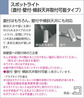 品名:スポットライト(フランジ) 畳数: 光源光色:蛍光灯(電球色)蛍25W 電球形蛍光ランプR25形(E26) アルミダイカスト・シルバー塗装 高-137 本体長-180 本体幅-φ110mm 重-0.7kg” 直付・壁付・傾斜天井取付可能 白熱球100W相当の明るさ 照射近接限度10cm