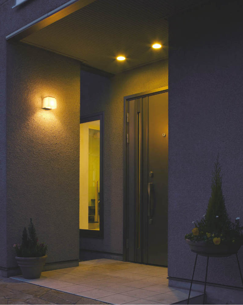 品名:防雨型ブラケット 畳数: 光源光色:白熱灯白40W クリプトン球40W形(E17) アルミダイカスト・ウォームシルバー塗装 ガラス・内面白色塗装 高-125 幅-121 出幅-145mm 重-1.7kg” 照度センサ付 点灯照度調節可能 センサモード切替可能 下面開放型 別売ポリ台〔AEE390027 ¥714(税抜¥680)〕”