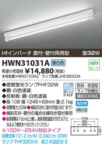 コイズミ照明 KOIZUMI 防雨防湿型直付器具 HWN31031A