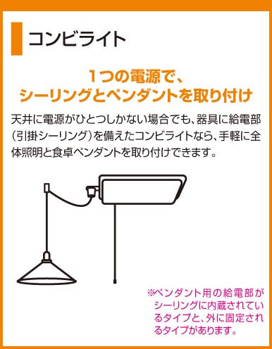 ※天井に「ローゼット」が付いている場合、木ネジは不要で天井を傷つけることなく簡単に取り付けられます。