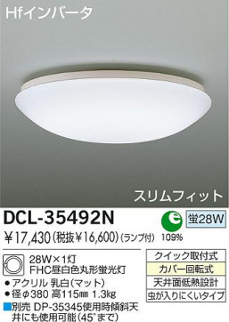 DAIKO ダイコー 大光電機 小型シーリング FHC丸形蛍光灯 DCL-35492L DCL-35492N アクリル乳白(マット) | 商品情報 | LED照明器具・照明機器の激安通信販売・格安通販・業務用販売・見積もり販売 照明倉庫 -LIGHTING DEPOT-