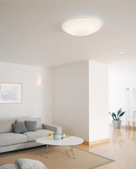 寸法:径φ630 高120 重量:2.7kg 材質:●フロストアクリル(模様入) 総W数:114W 省エネ達成率:1.19 ランプ名称:長寿命丸形蛍光灯FHC(48W+38W+28W) ランプ本数:3本 光源色:昼白色 傾斜取付45°可能