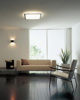 寸法:径□612 高99 重量:3.9kg 材質:●木材(エボニーブラウン色仕上)|●アクリル(乳白) 総W数:86W 省エネ達成率:1.23 ランプ名称:長寿命丸形蛍光灯FHC(48W+38W) ランプ本数:2本 光源色:昼白色 傾斜取付45°可能