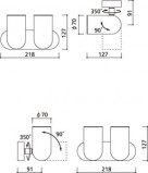 寸法:巾218 長127 出126首振角度:90度(片側)回転角度:350度 重量:0.8kg 材質:●鋼、アルミ(オフホワイト色塗装)|●反射板:アルミ(銀色アルマイト・鏡面) 総W数:20W ランプ名称:電球形蛍光灯EFD ランプ本数:2本 光源色:電球色 傾斜取付90°可能 壁面・天井面・傾斜面取付兼用|照射面近接限度30(cm)|ランプ:(No.)182S(昼白色)・(No.)182R(電球色)