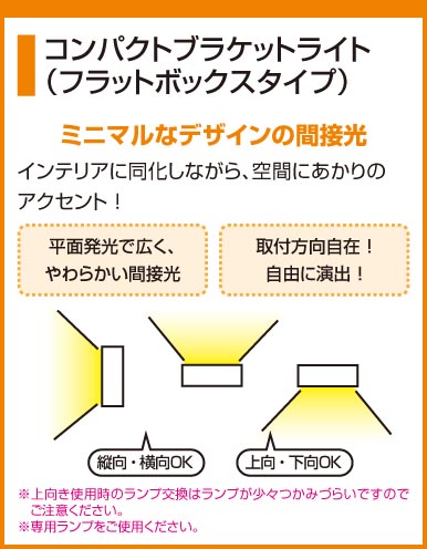 寸法:巾100 高43 出120 重量:0.4kg 材質:●木材(チャコールグレー色仕上) 総W数:8W 省エネ達成率: ランプ名称:フラット蛍光灯EFF ランプ本数:1本 光源色:電球色 傾斜取付90°可能 壁面・天井面・傾斜面取付兼用|上向き・下向き・縦向き取付可能|ランプ:No.164B(昼白色)・No.164A(電球色)