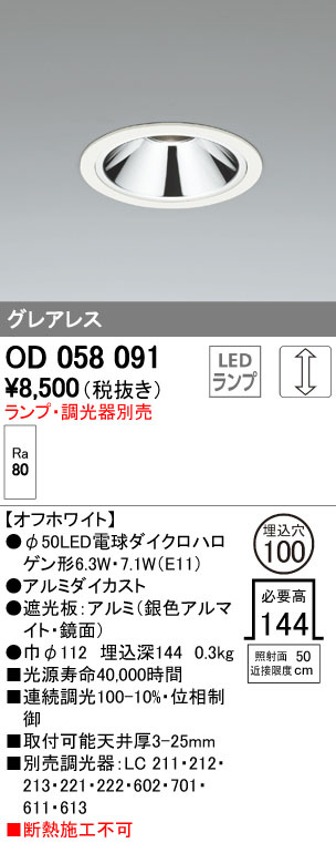 ODELIC オーデリック ダウンライト OD058091