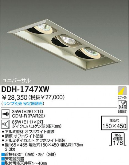 35W(E26)×1灯 CDM-R(PAR20) 85W(E11)×2灯 ダイクロハロゲン球(径70mm)
