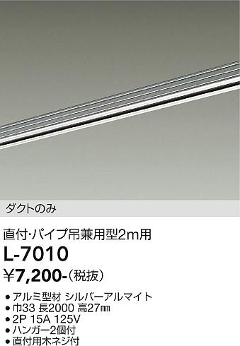 DAIKO 大光電機 直付・パイプ吊兼用ダクトレール2m L-7010