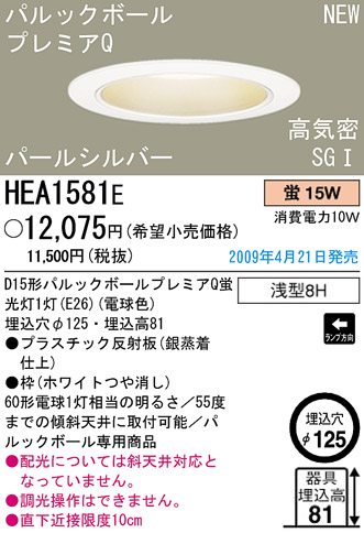 ●直下近接限度10cm (10W) パルックボール プレミアQ NEW パールシルバー 高気密 SGI