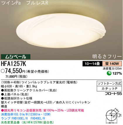 ●光色変更品番 (光)HFA1257KN(昼白色) ツインPa プルレスR 明るさフリー