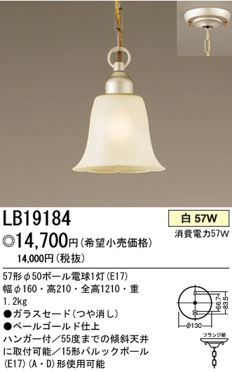 白熱灯57W 57形φ50ボール電球1灯(E17) 幅φ160・高210・全高1210・重1.2kg ガラスセードつや消し ペールゴールド仕上