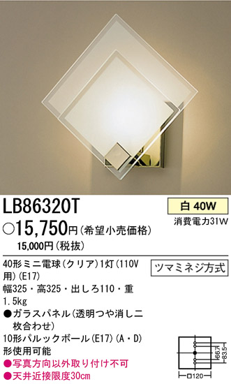 白熱灯40W ツマミネジ方式 40形ミニ電球(クリア)1灯(110V用)(E17) 幅325・高325・出しろ110・重1.5kg ガラスパネル透明つや消し二枚合わせ