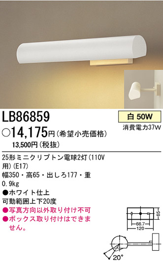 白熱灯50W 25形ミニクリプトン電球2灯(110V用)(E17) 幅350・高65・出しろ177・重0.9kg ホワイト仕上