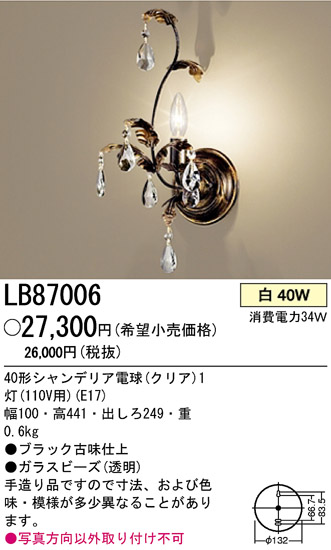 白熱灯40W 40形シャンデリア電球(クリア)1灯110V用(E17) 幅100・高441・出しろ249・重0.6kg ブラック古味仕上 ガラスビーズ(透明)