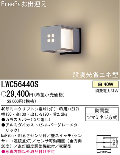 ●写真方向以外取り付け不可 (31W) FreePaお出迎え 段調光省エネ型
