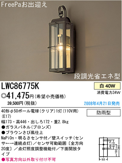 ●写真方向以外取り付け不可 (34W) FreePaお出迎え 段調光省エネ型