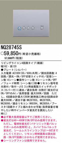 リビングライコン4回路タイプ(親器) 幅162・高120 プレートシルバー 入力電源:AC100V(50/60Hz共用) 調光回路数:4回路 調光−ON/OFF切替スイッチ付 記憶シーン数:4シーン 操作シーン数:4シーン+ON/OFF フェード時間:シーン毎に3秒 リモコン信号受光部付