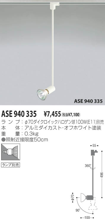 白100W|ランプ:φ70ダイクロイックハロゲン球100W(E11)別売|本体:アルミダイカスト・オフホワイト塗装|●高-496 本体長-100 本体幅-φ70mm 重-0.3kg|●照射近接限度50cm