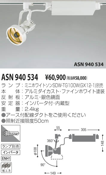 H100W|ランプ:ミニホワイトソンSDW-TG100W(GX12-1)別売|本体:アルミダイカスト・ファインホワイト塗装|反射板:アルミ・銀色鏡面|安定器:インバータ付・内蔵型|●高-148 本体長-149 本体幅-φ108mm 重-2.4kg|●アース付配線ダクトをご使用ください|●照射近接限度50cm