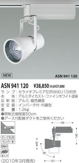 H35W|ランプ:セラメタプレミアS35W(EU10)別売|本体:アルミダイカスト・ファインホワイト塗装|反射板:アルミ・銀色鏡面|安定器:インバータ付・内蔵型|●重-1.2kg|●照射近接限度50cm|●アース付配線ダクトをご使用ください